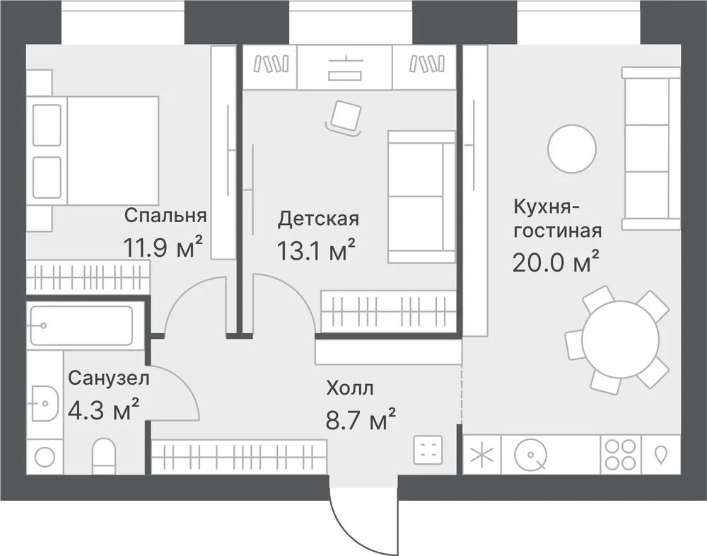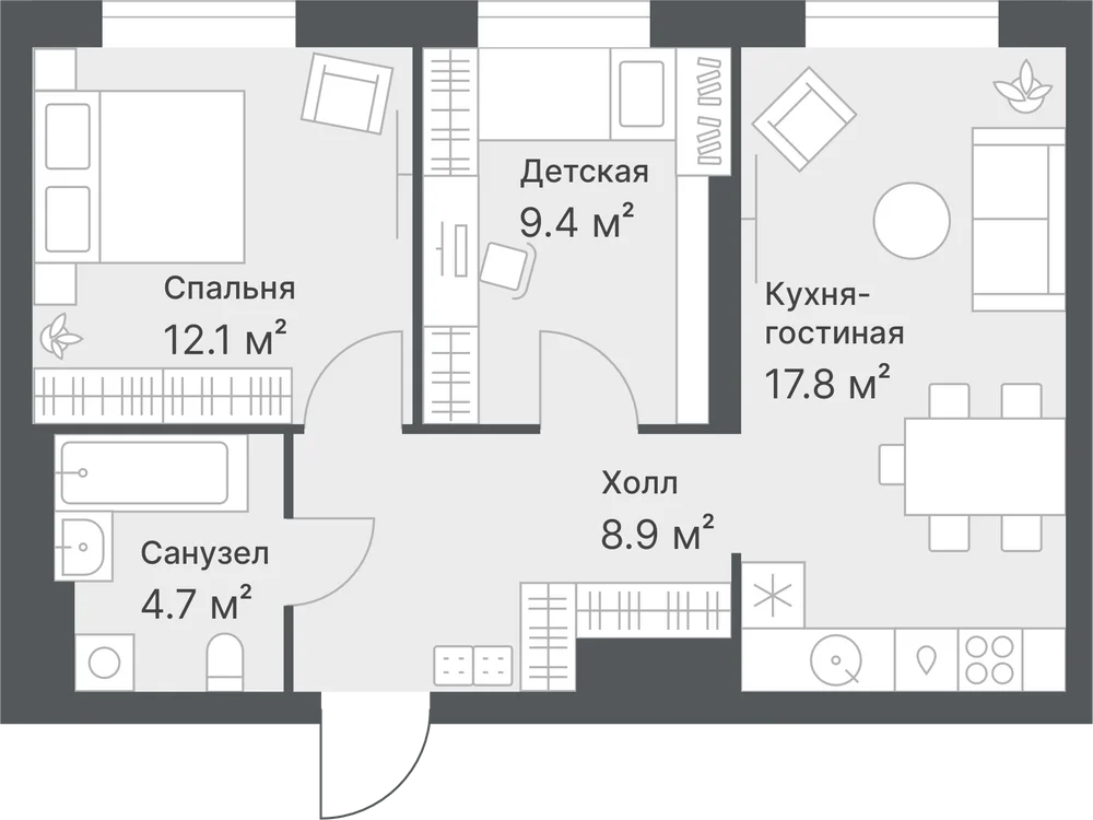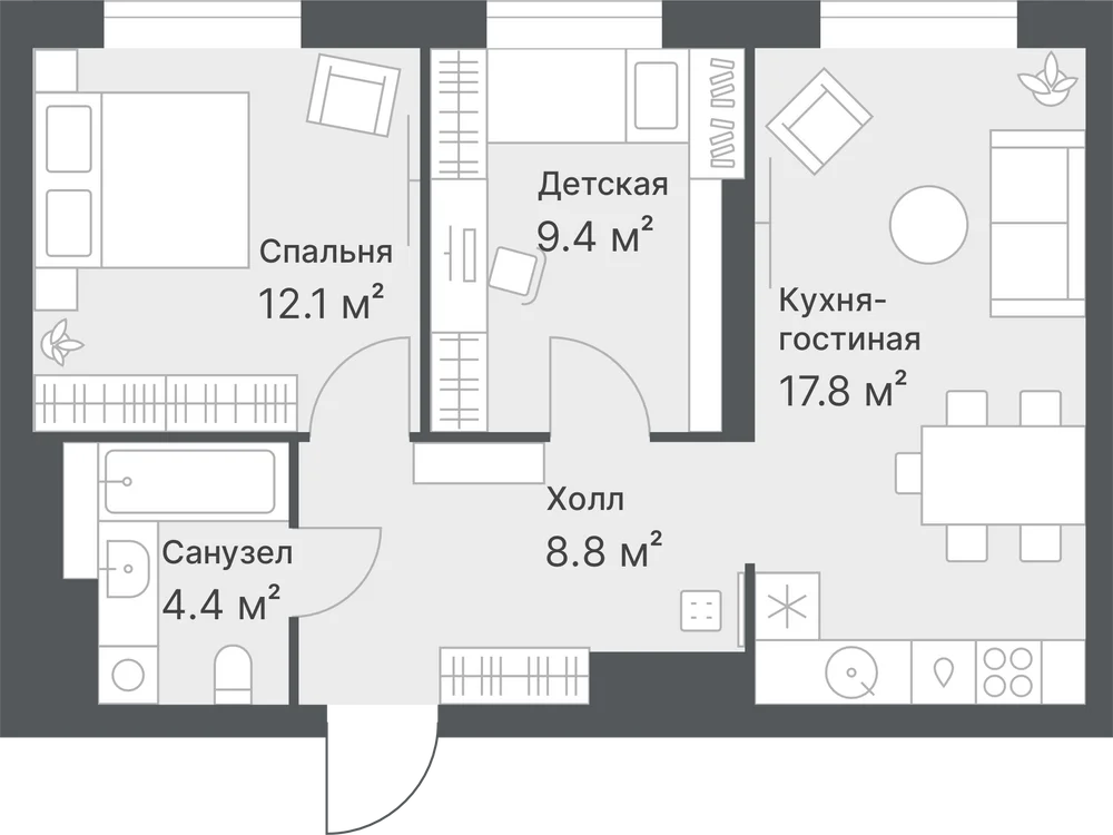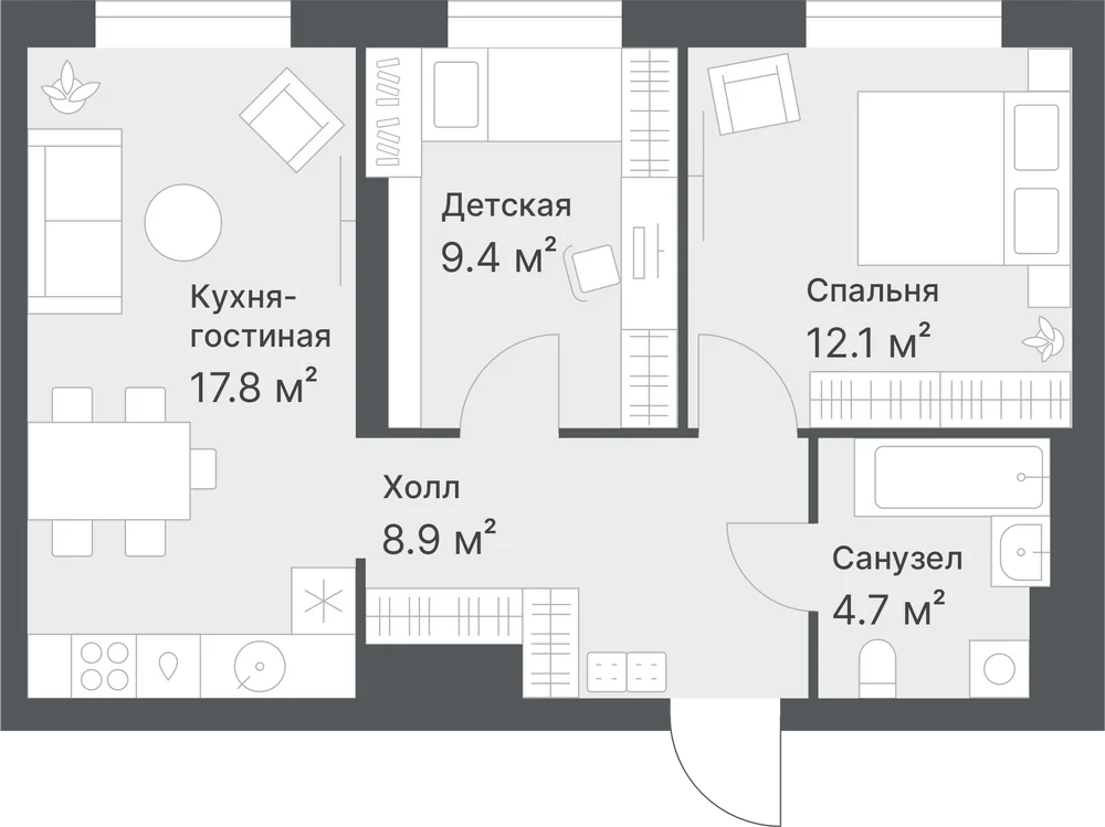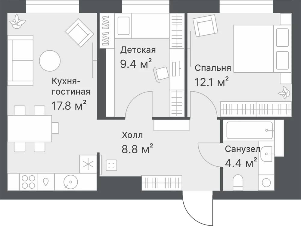 2-комнатная 58 м