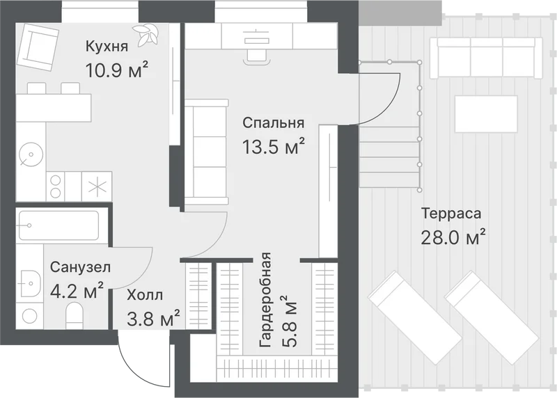 Две с выходом из спальни и две из кухни-гостиной. Все они на двенадцатом этаже, чтобы было хорошо видно город.